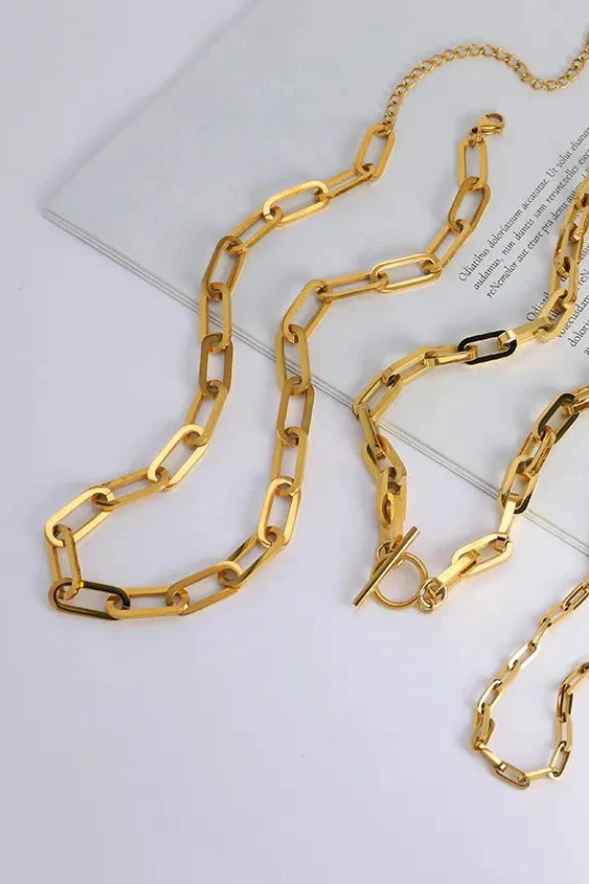Elevate your accessory game with our Bold Luxe Paperclip Chain Necklace Collection – a modern twist on timeless elegance. Crafted from high-quality stainless steel and finished in radiant 18K gold plating, each necklace showcases a sleek, geometric paperclip design that blends strength with sophistication.