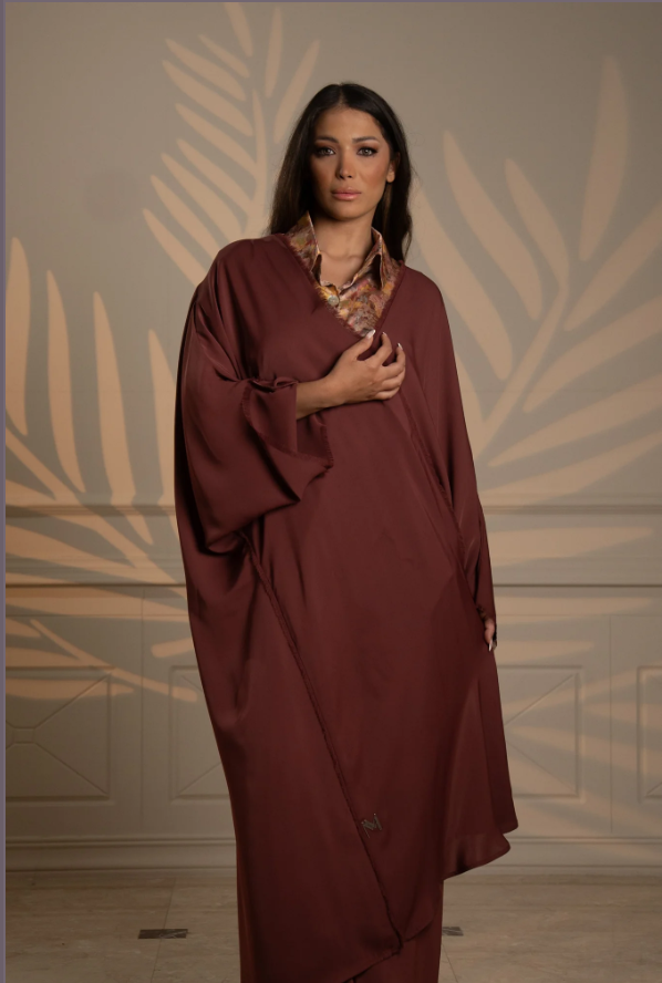 Discover refined elegance with this Nada abaya in a rich mahogany hue, designed exclusively by Muse by Mozaabi. Crafted from premium lightweight Nada, it flows gracefully with every movement, offering a perfect blend of modesty and sophistication.